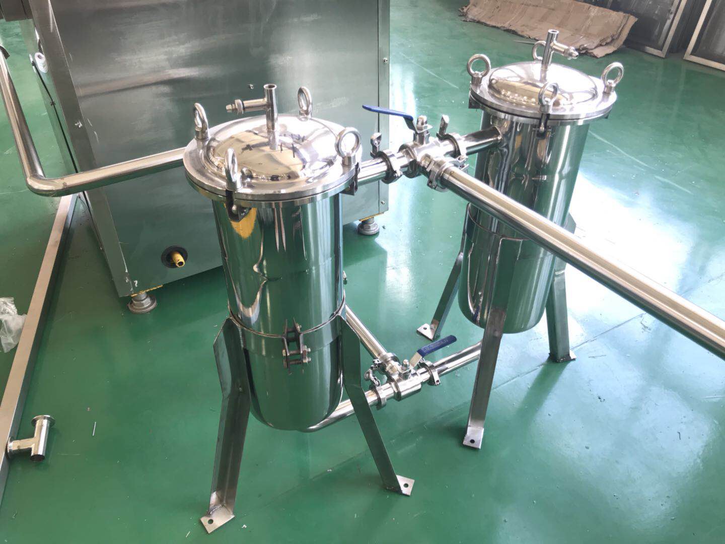 A Double Filter, also known as a dual-stage syrup filtration system, is installed in beverage production lines to clarify syrup, remove particles, and prevent contamination during mixing and filling.